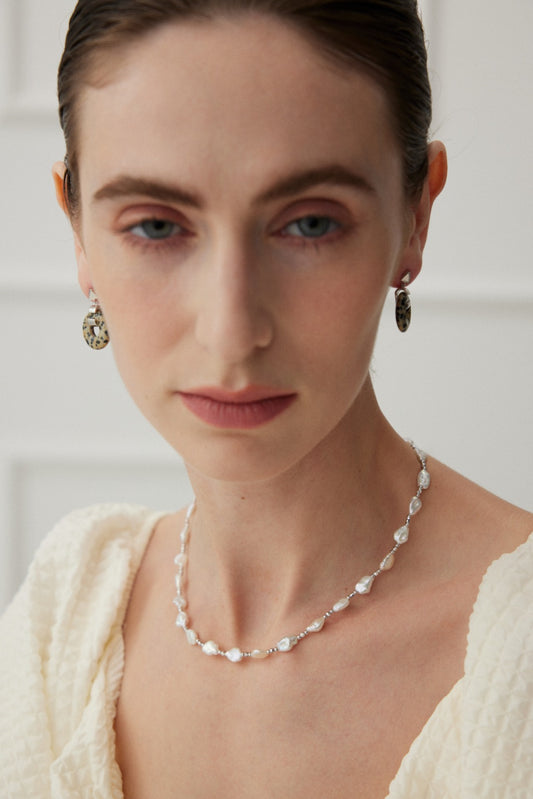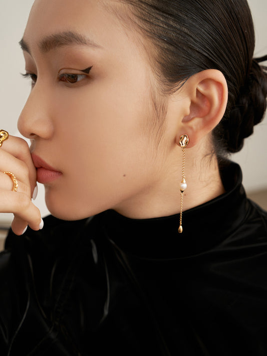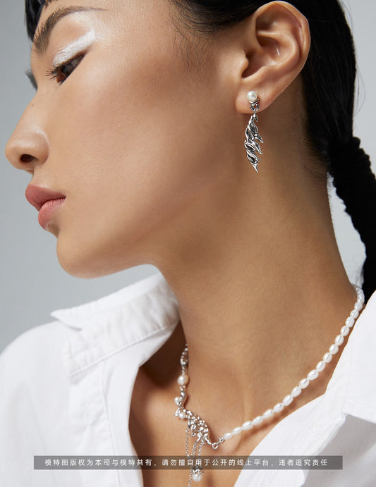 Wind-eroded Feather Series Sterling Silver Pearl Earrings