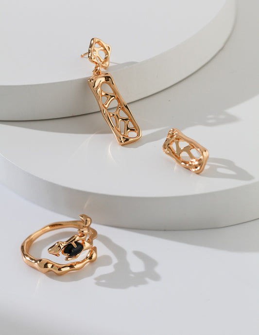 简约至极的设计,两颗珍珠宛如清晨的露珠,晶莹剔透,金色的线条宛如阳光洒落,优雅又不失高贵。佩戴在耳畔,瞬间增添一丝清新与雅致,无论是日常搭配还是出席重要场合,都能展现出你的独特品味。