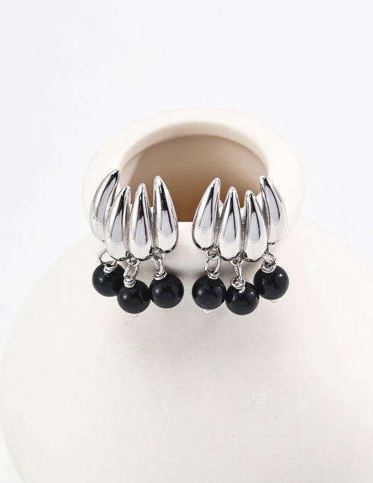 Sterling Silver Black Onyx/Tiger Eye Vintage Earrings