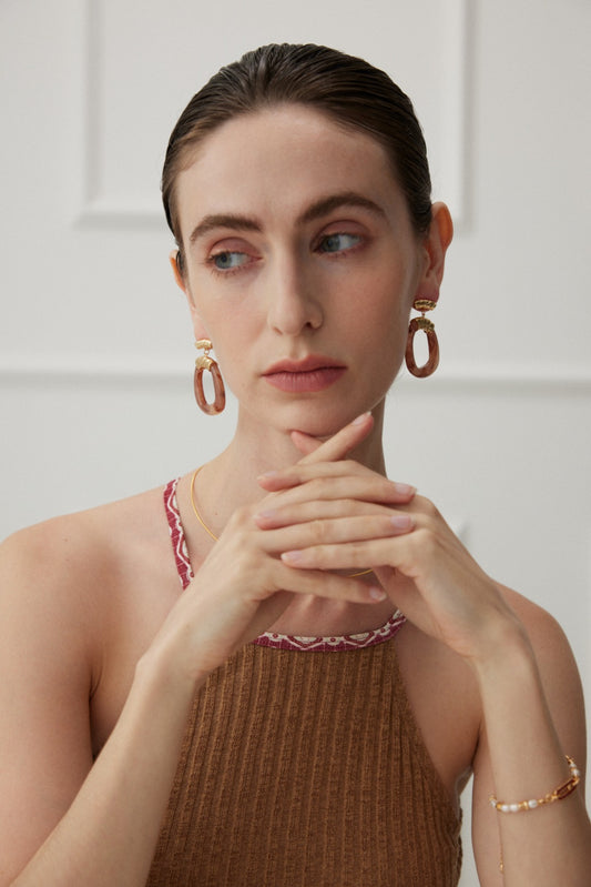 The unique modern ethnic resin earrings perfectly blend classic and modern styles, showing a different style. The round design is simple yet elegant, and the brown tone reveals a low-key luxury.