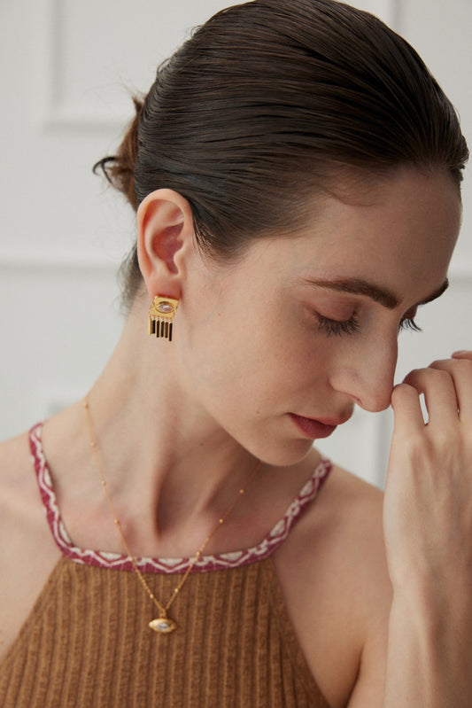 The combination of gold and blue makes the Amazonite earrings look noble and mysterious, making people want to find out more. The white pearls are the finishing touch, making the whole pair of earrings more dazzling.