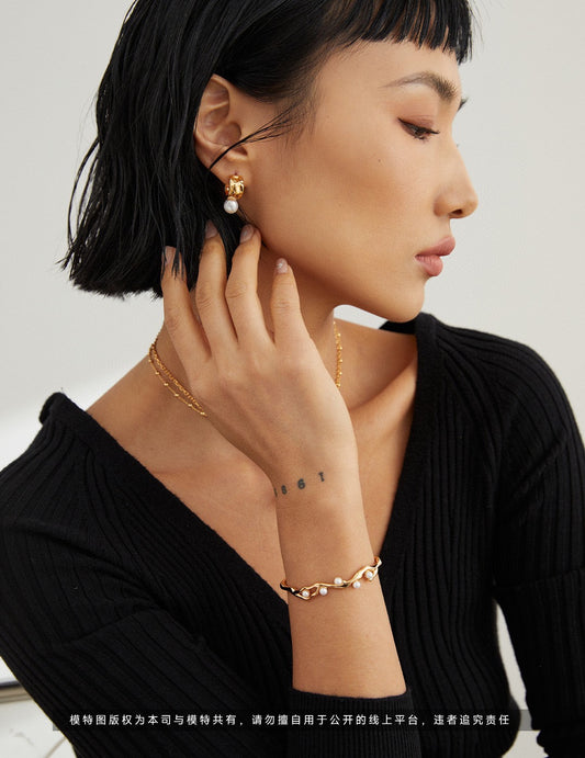 Irregular Pleated Design Series Silver Opal Earrings