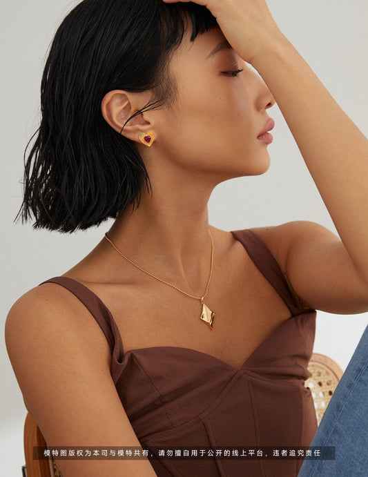 Sterling silver heart red glaze earrings