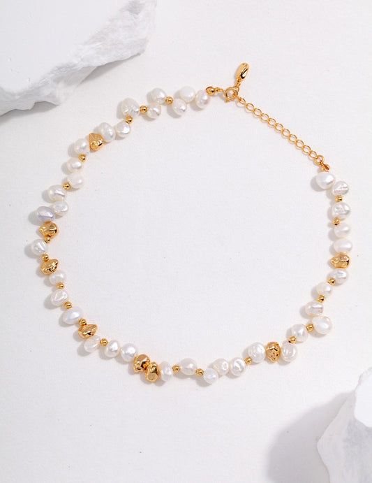 Sterling silver round baroque pearl necklace