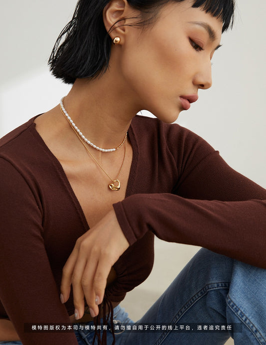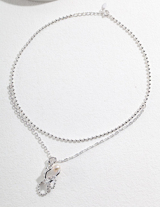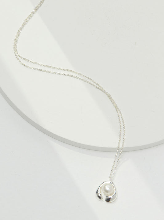 Irregular Surface Series Sterling Silver Heart Pearl Necklace