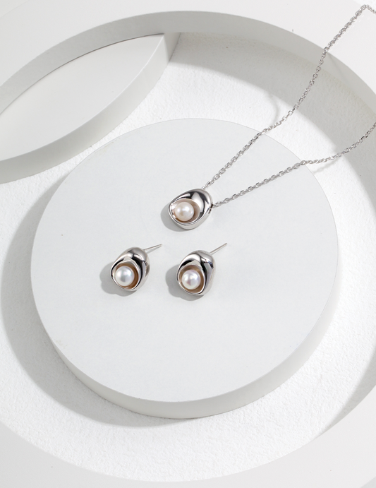 Wave design sterling silver pearl necklace