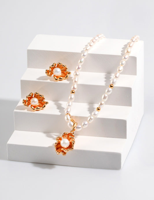 Conch design sterling silver pearl necklace