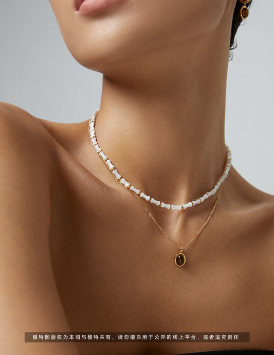 Sterling silver white butterfly shell skirt necklace (certificate not included)
