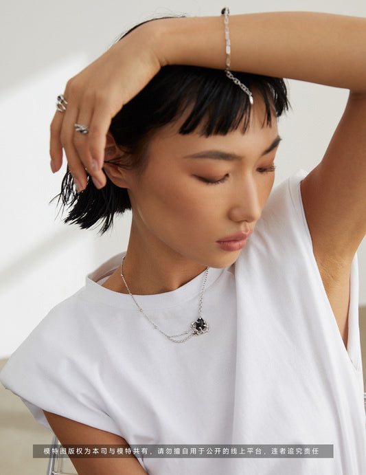 Three-dimensional hollow plain silver series sterling silver simple necklace