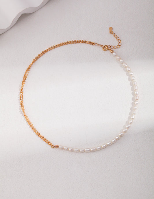 Sterling Silver Natural Rice Pearl Necklace