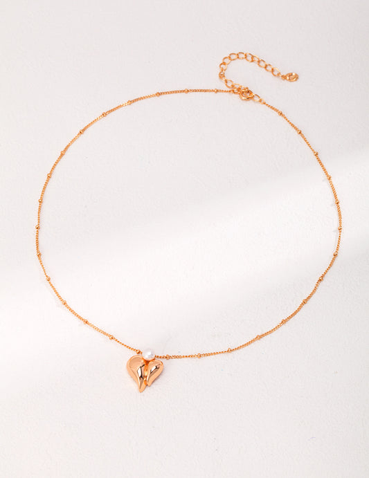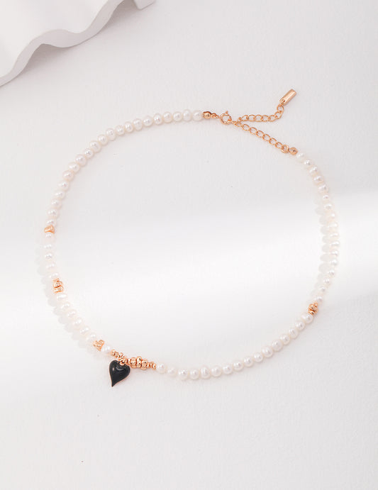 Sterling silver heart drop glaze pearl necklace