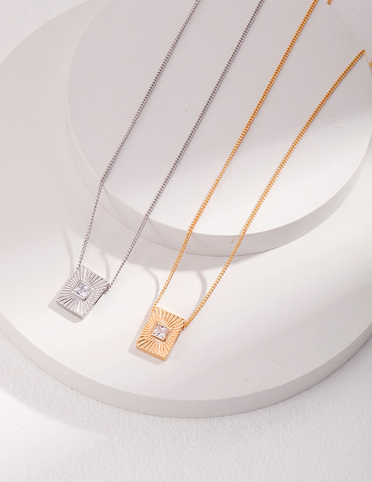 Sterling silver zircon necklace cube necklace