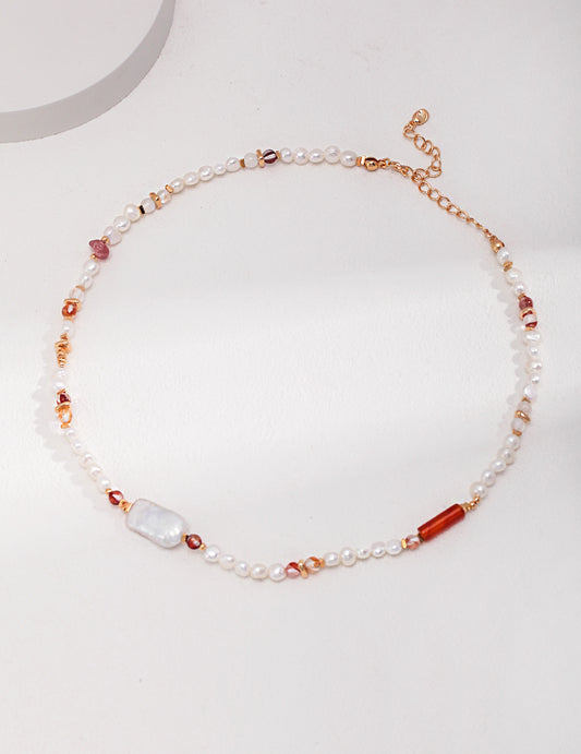 Sterling Silver Strawberry Quartz Baroque Pearl Necklace