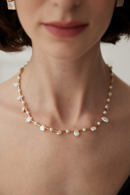 Morning Dew Dream Natural Baroque Stone Pearl Necklace