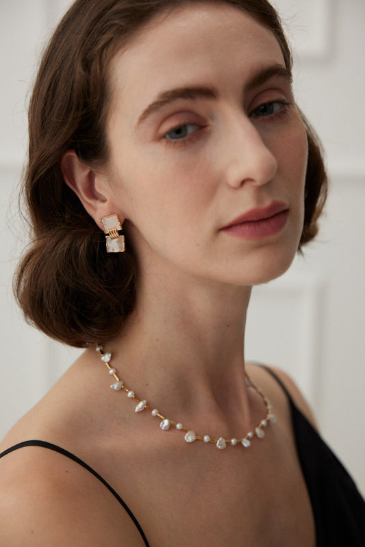Square shell earrings are simple yet elegant, and the unique design highlights your personality. The small golden squares are connected to each other, like two bright stars, shining with charming light.