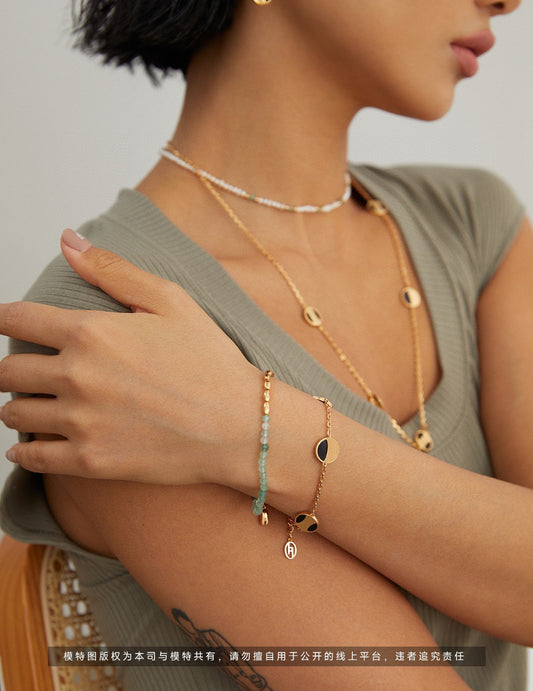 "Flow" series drip glaze cold style design sterling silver pearl bracelet