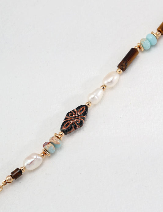 Sterling silver tiger eye pearl vintage bracelet