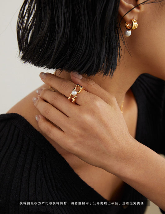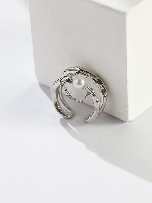 Fashionable pearl ring💍The bayonet design can be adjusted at will regardless of the size. The thick threaded ring arm has a high-end texture and is very simple and fashionable.