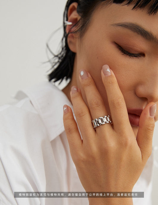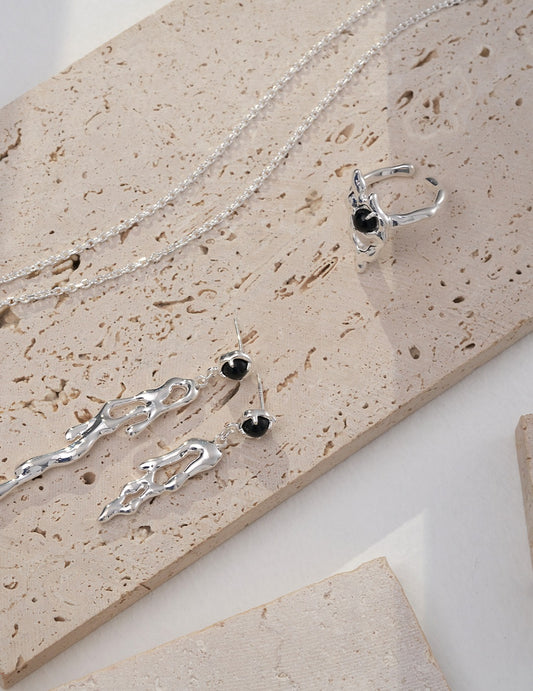 纯银戒指 自然风格系列戒指,采用细脉溪流流动形态设计,设计上不止一股溪流,而是采取多层液流的结构,使佩戴的视觉效果更加突出。特殊设计开口结构使戒指更加别具一格。