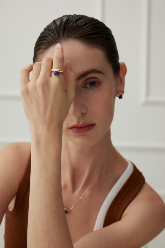 The design is inspired by classical Roman totem elements and embellished with agate in a warm sunny tone. The coldness of the metal is touched by the warmth and turns into confidence between the fingertips.