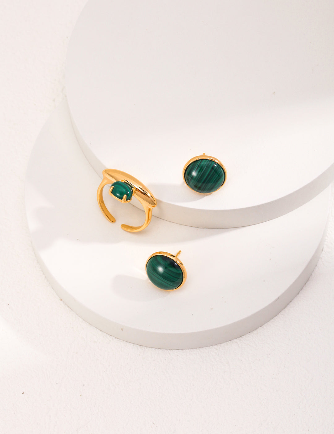 Minimalist style, exquisite malachite earrings, no need for excessive decoration, using exquisite craftsmanship only to reflect the beauty of malachite.