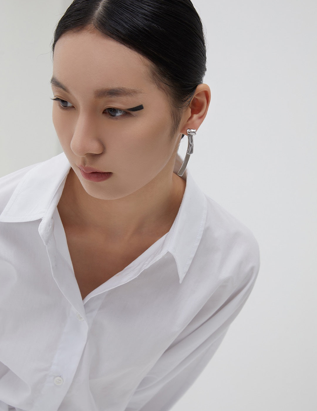 The irregular texture is combined with the long strip shape, and the folding elements in the design make the overall shape more three-dimensional. The frosted surface treatment gives this pair of earrings a more delicate look.