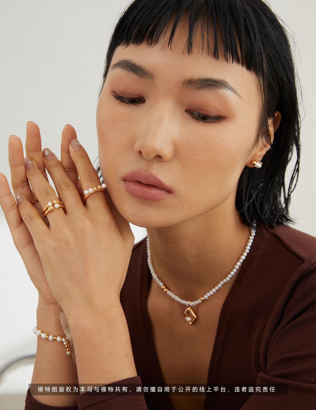Ins style pearl ring, with top opening design, double structure, and asymmetrical spacer beads, it creates a sense of fashion.