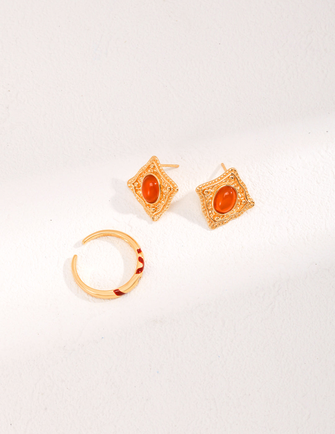 The simple ring, interwoven with red threads and dotted with zircon, is exquisite and beautiful.