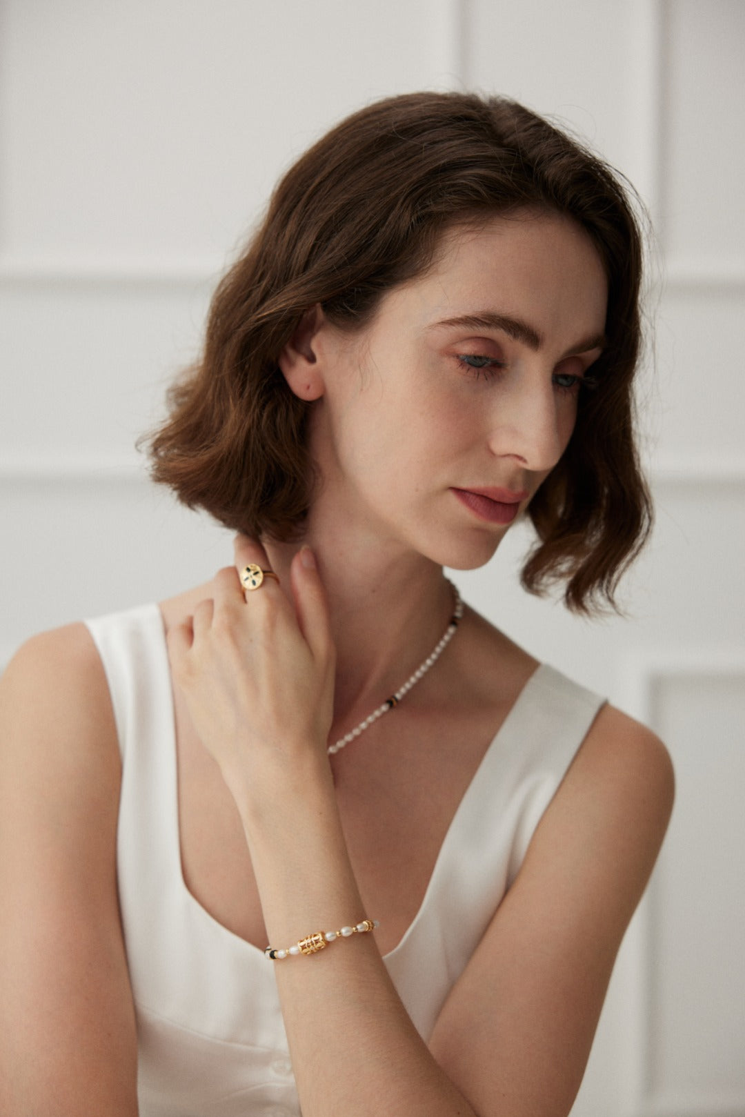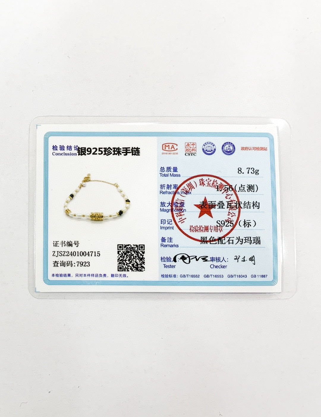 Size: Chain length about 16cm plus adjustable chain, pearls about 4.3*5.5mm, 4mm, silver silk shell/black agate about 4.3mm